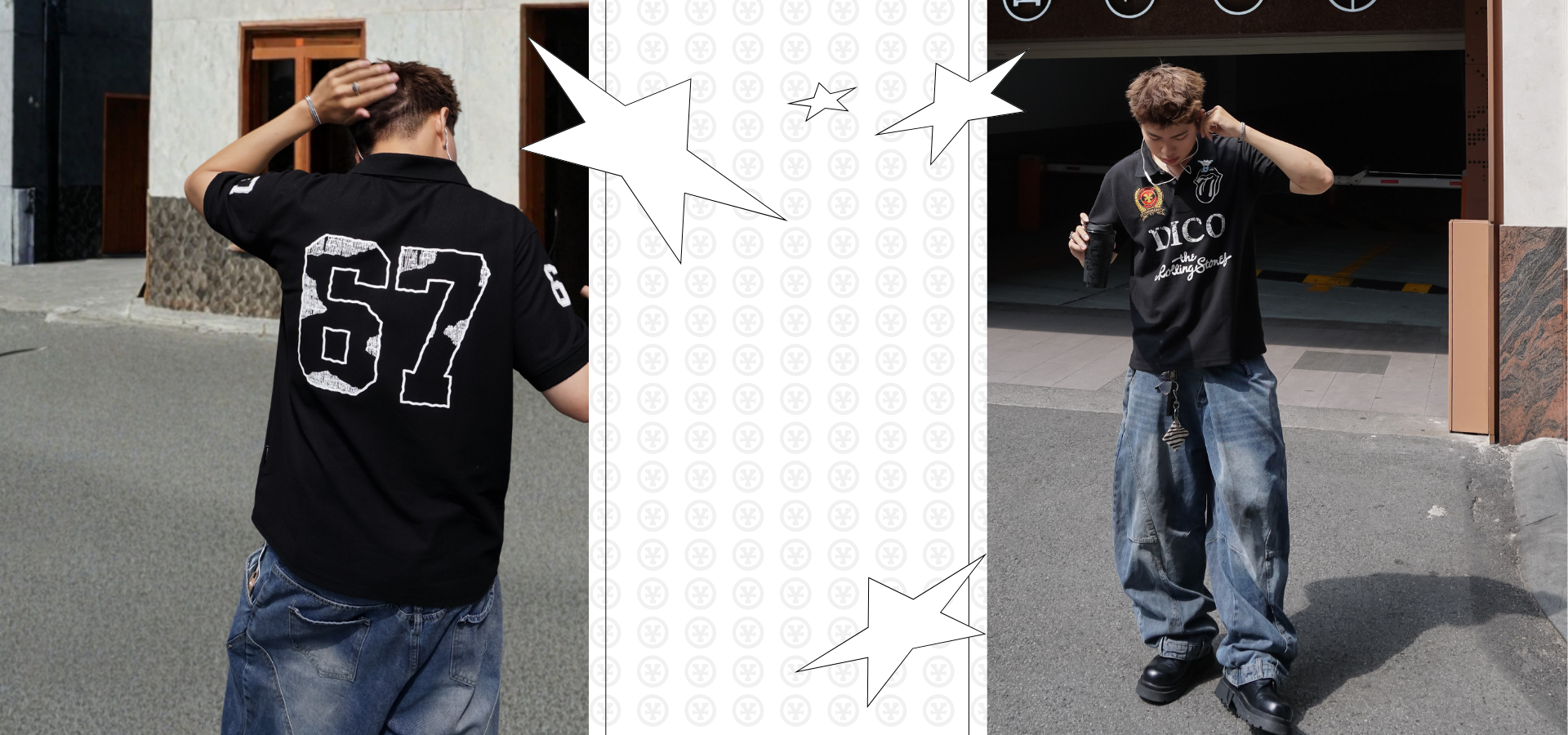 DCxRS Sheriff Patches Denim Pants Black