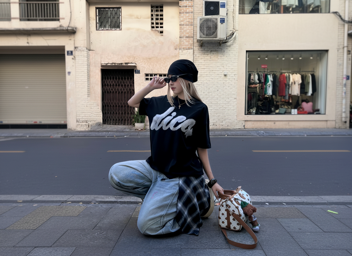 "Y" Embroidery Relaxed Denim Pants