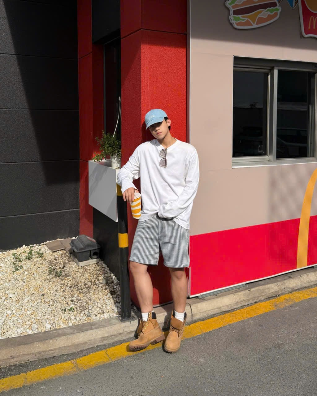 Embroidery Logo Baggy Denim Shorts - Light Blue