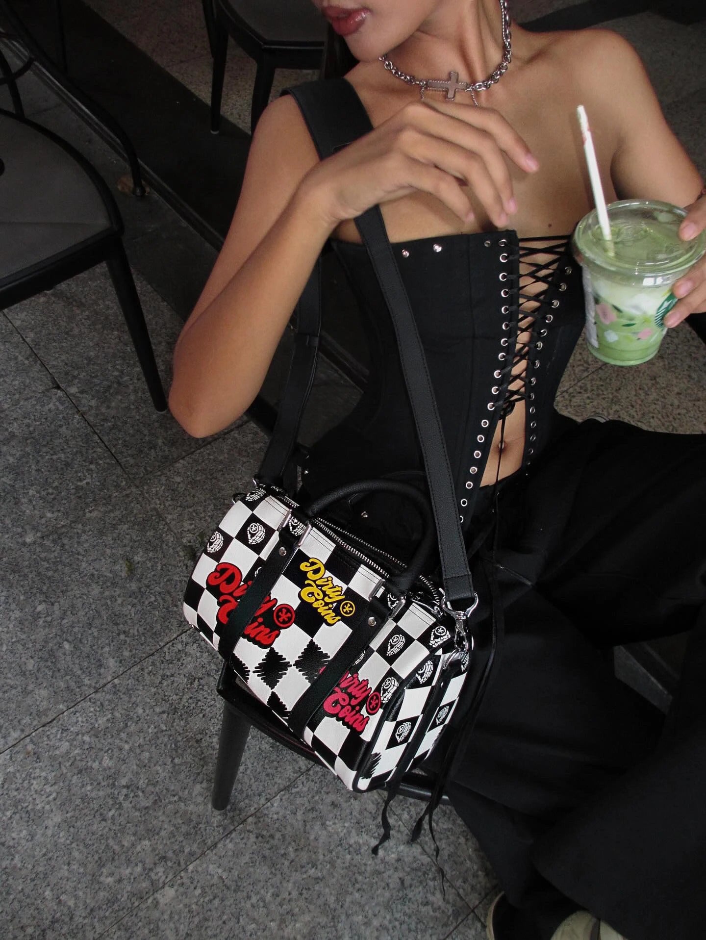 Checkerboard Print Mini Bowler Bag