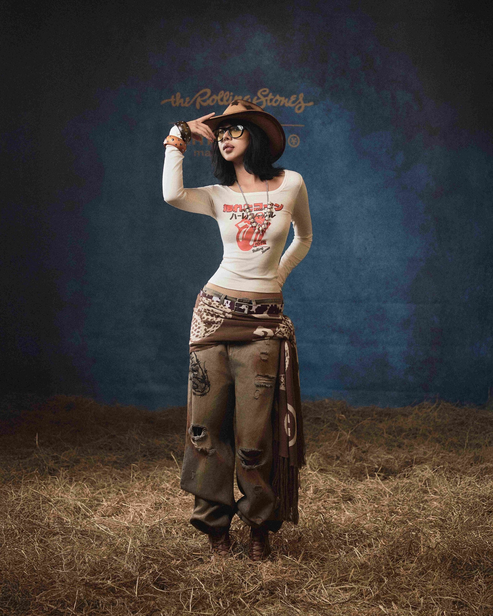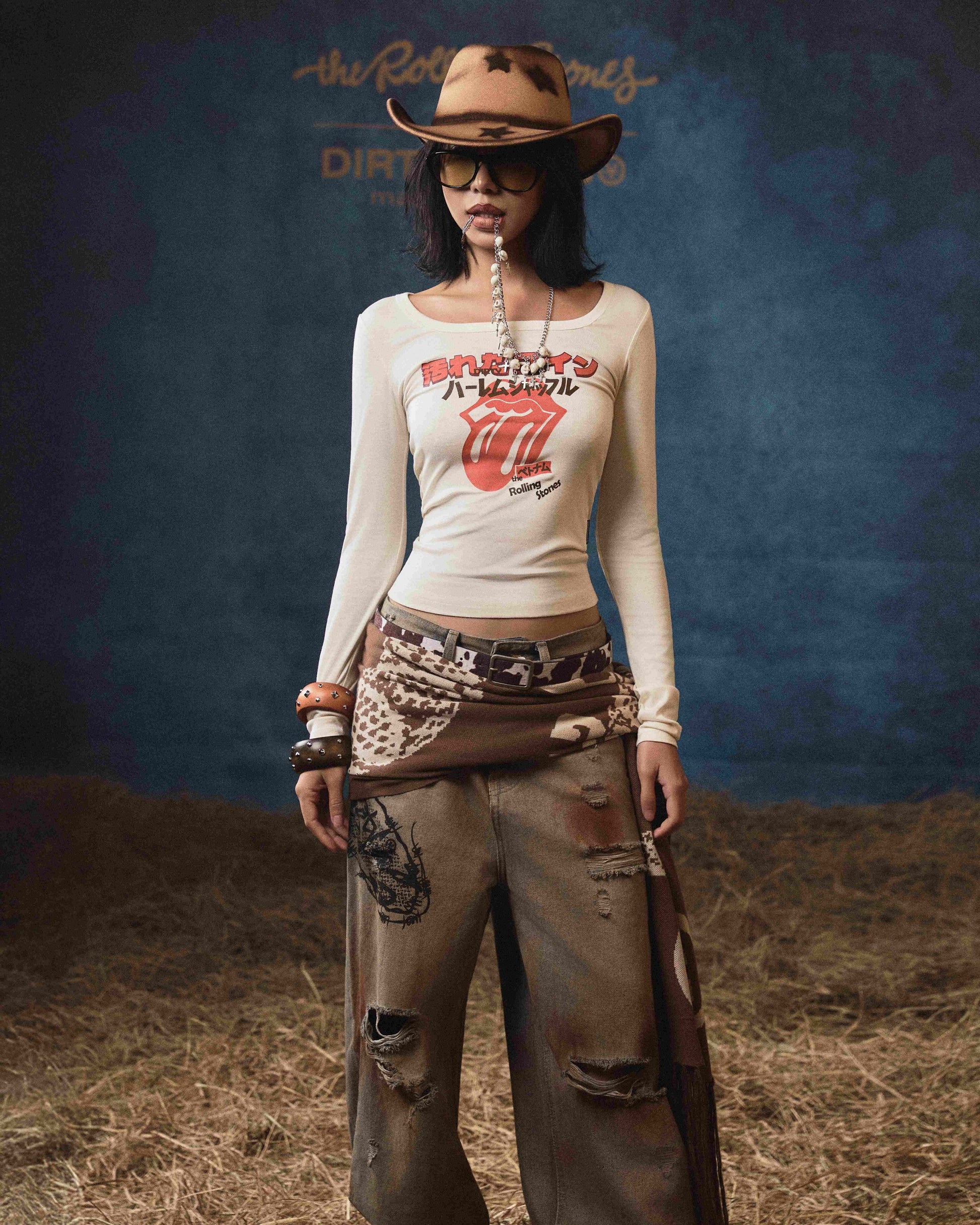DCxRS JP Inspired Fit LS Baby Tee Tan