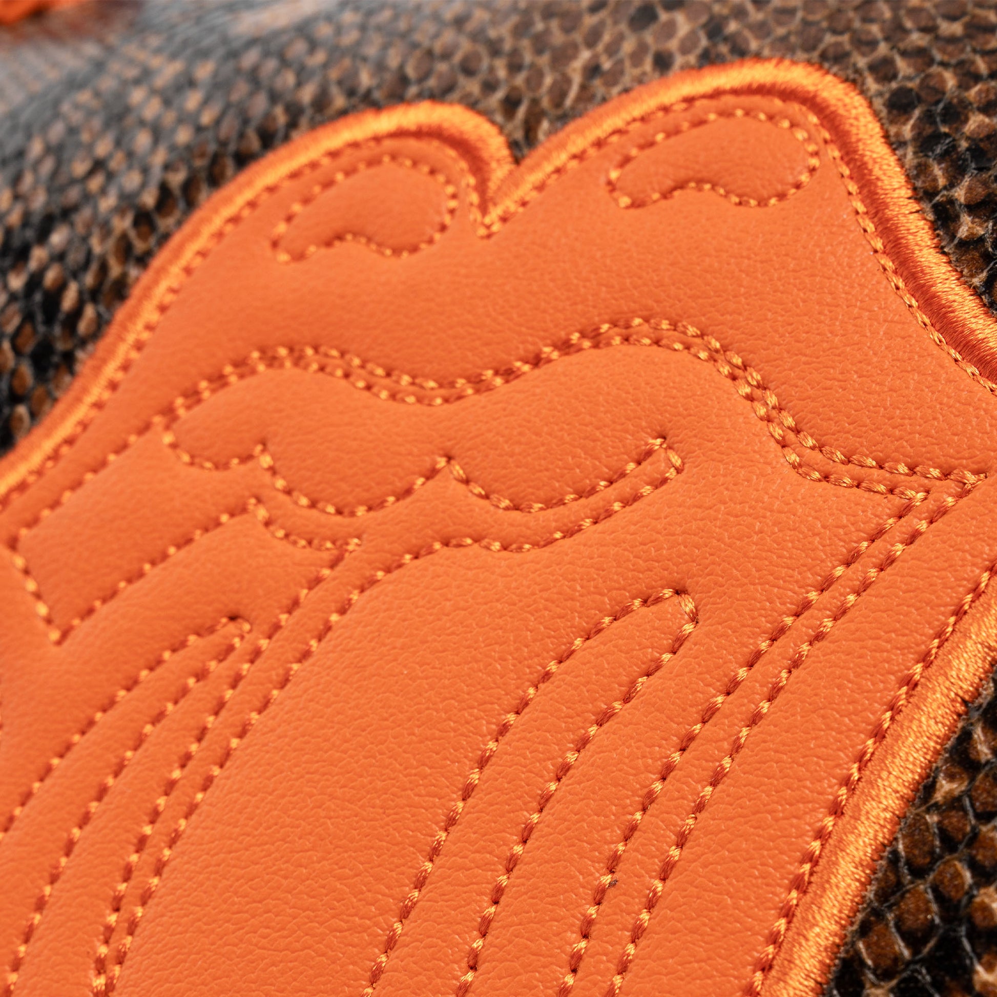 • Made from synthetic PU leather with a snakeskin texture, lined with nylon on the inside.