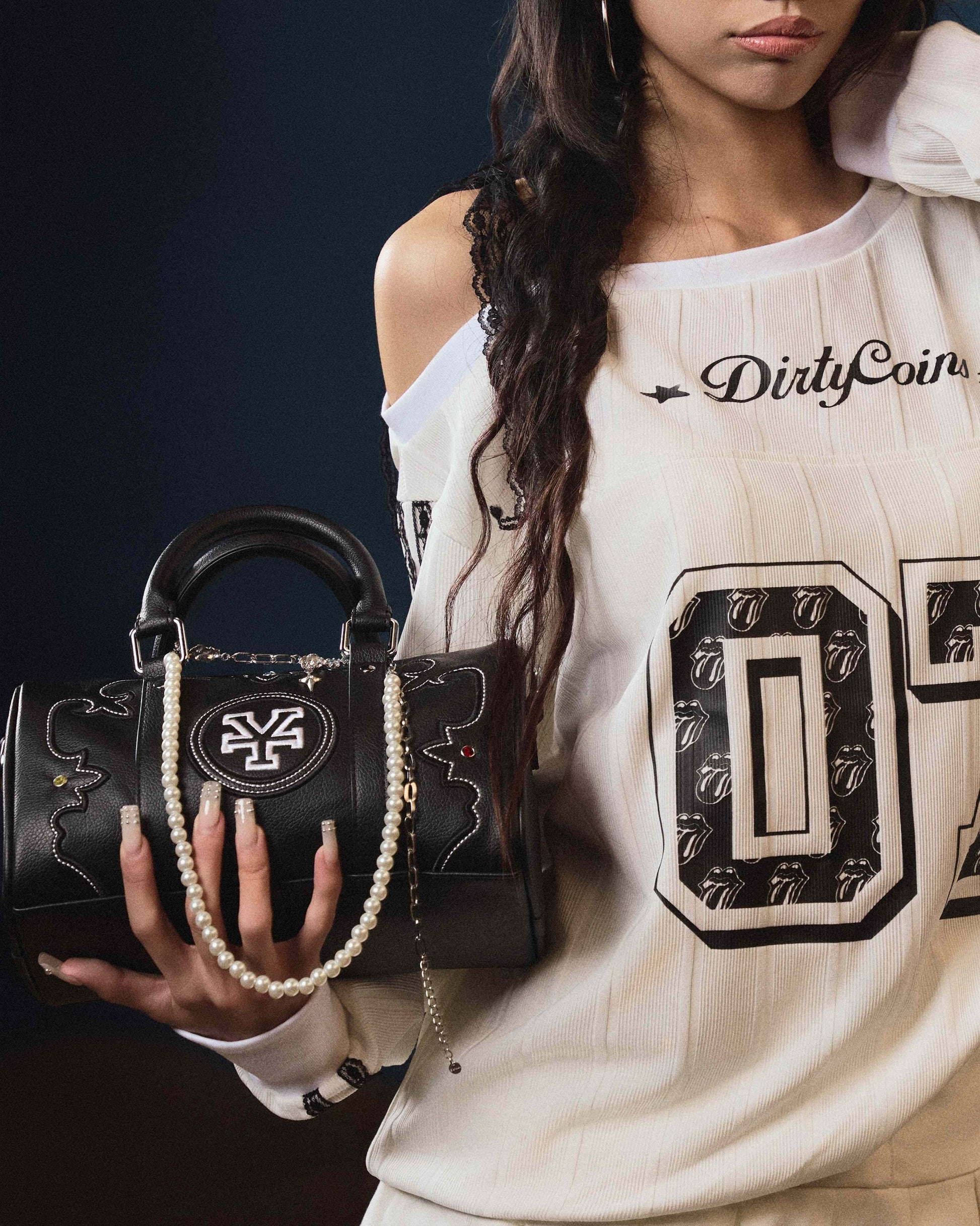 • Adjustable strap with buckle and padded shoulder section featuring the DirtyCoins logo