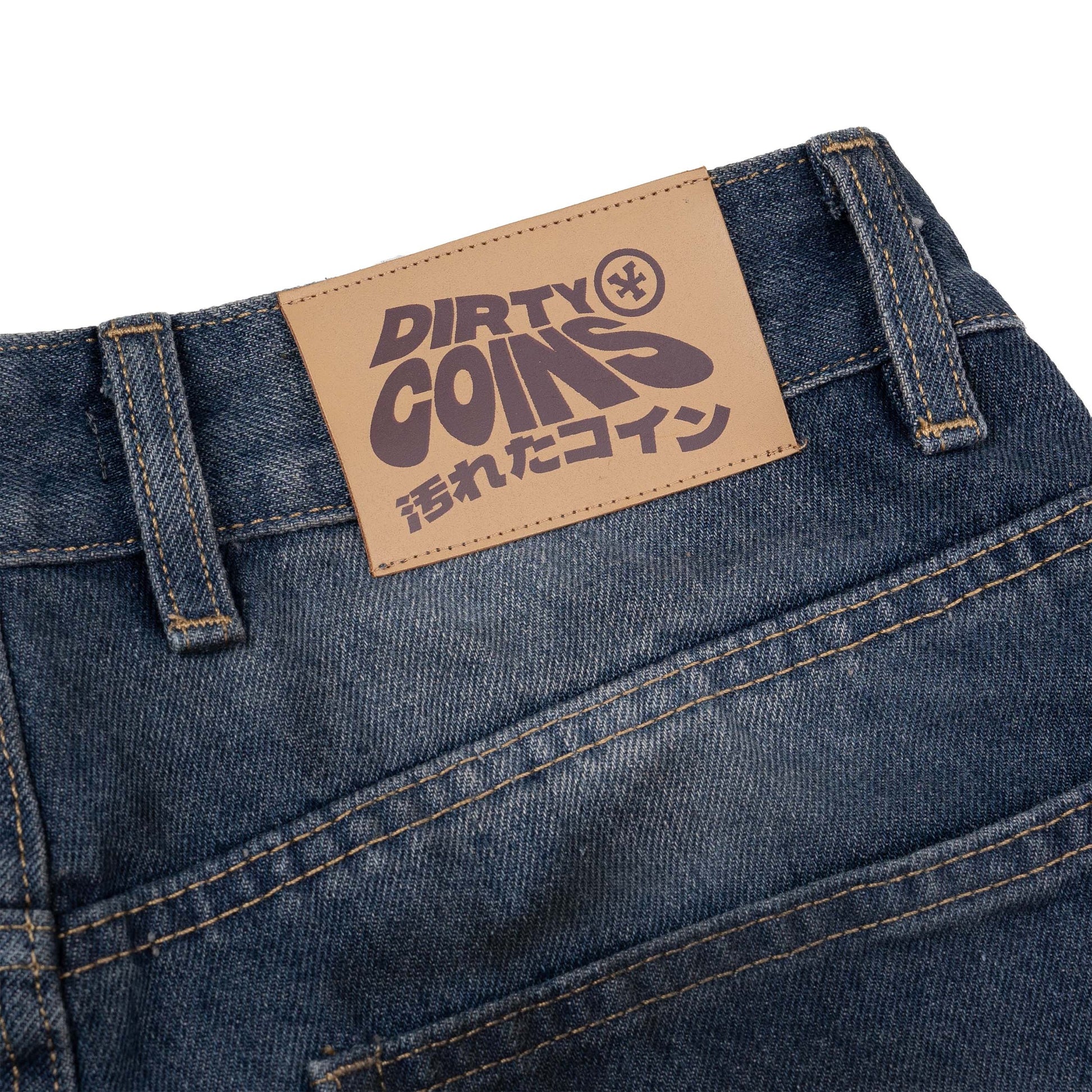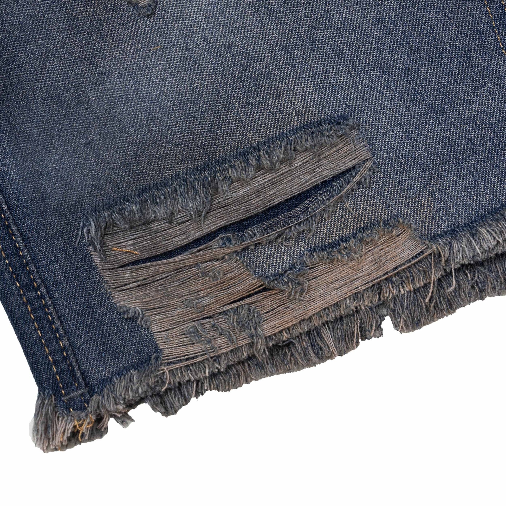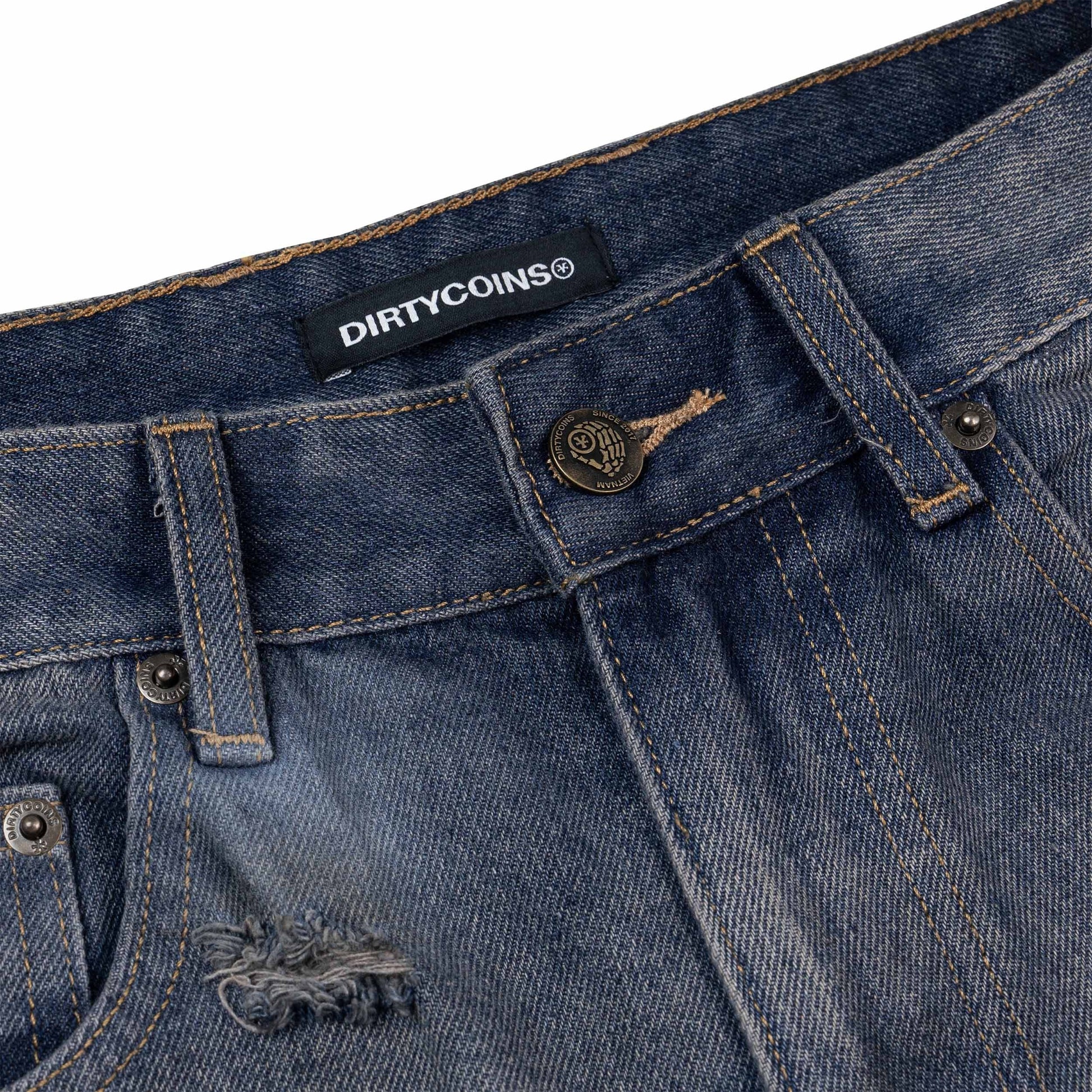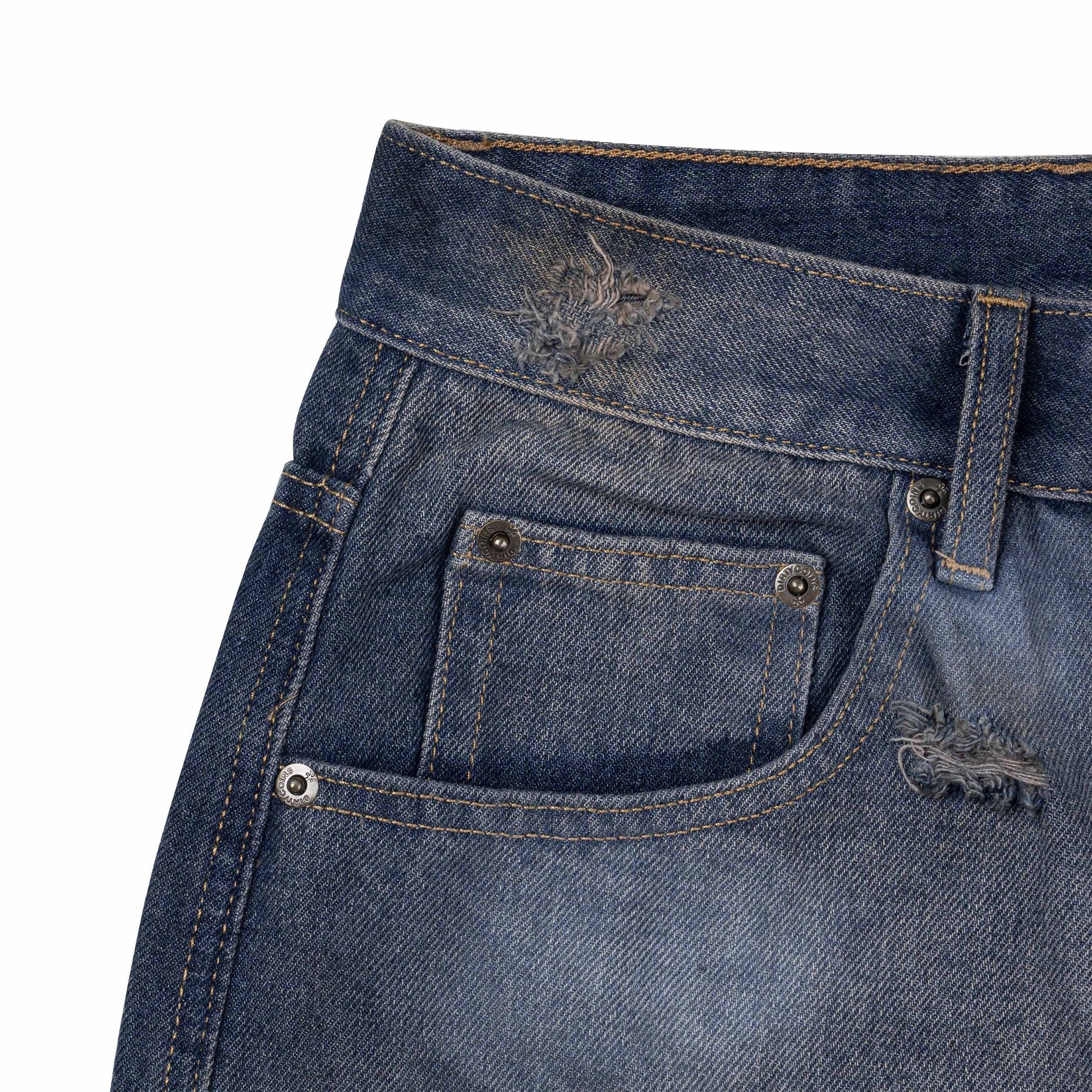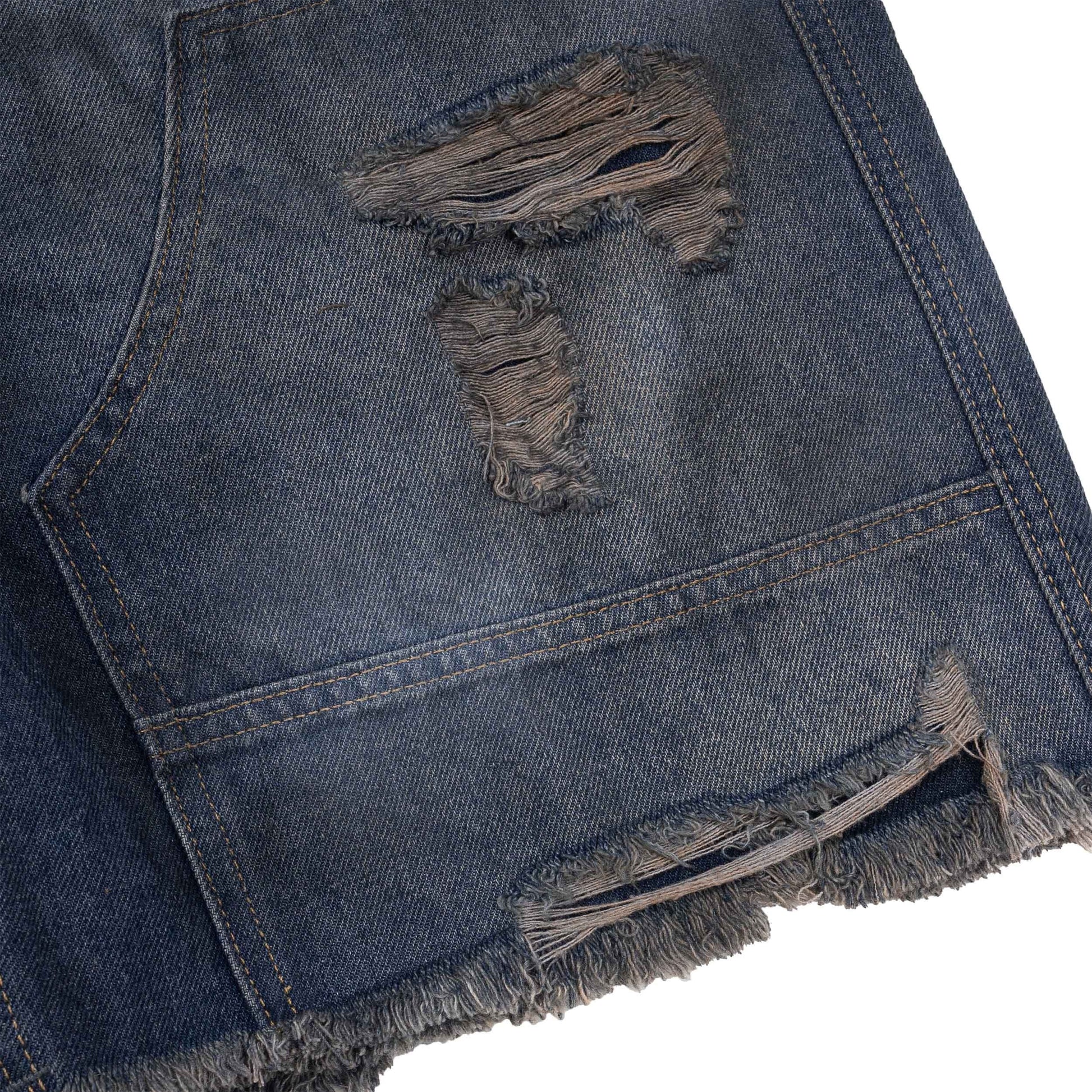 DirtyCoins Double Knee Shorts Distressed Blue Wash
