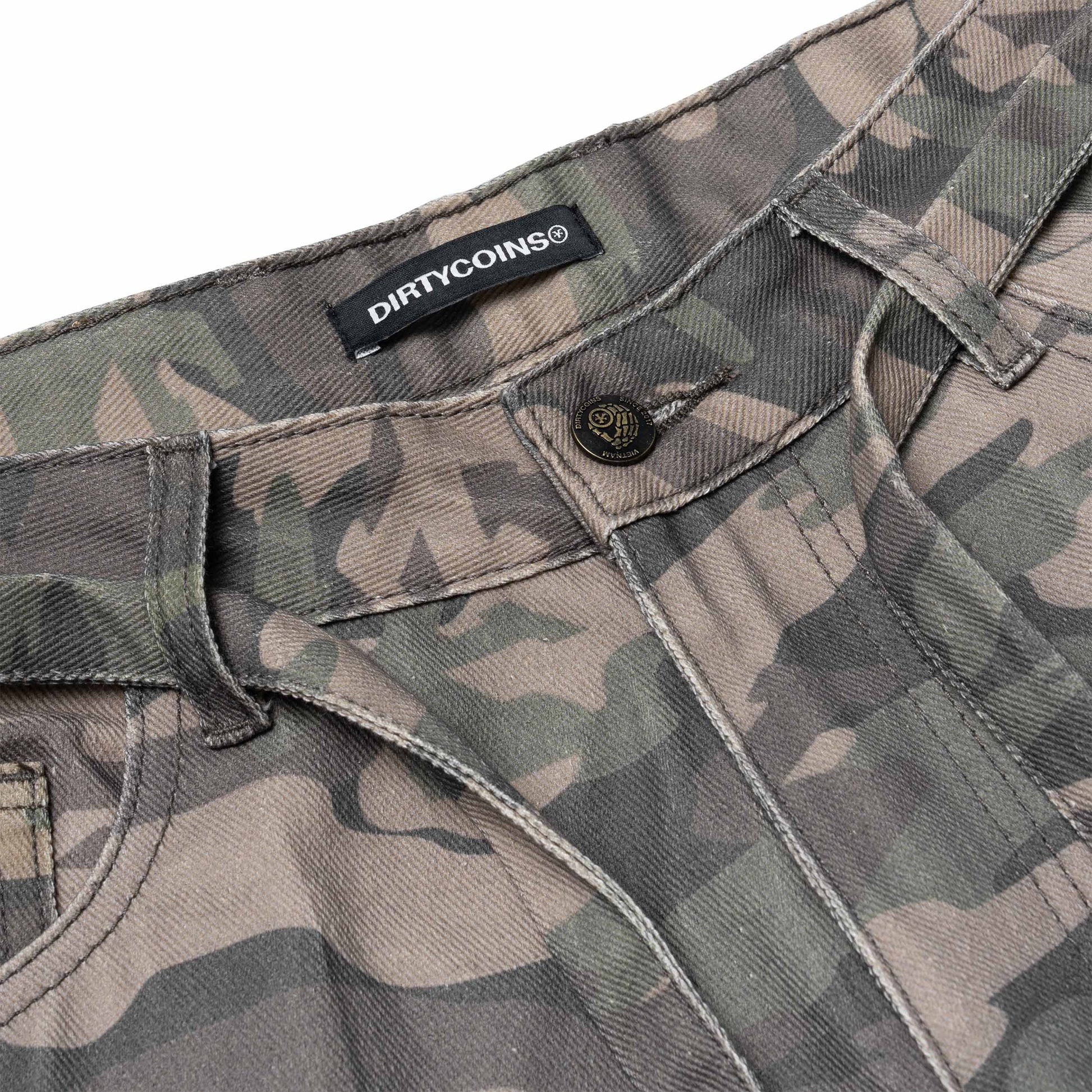 DirtyCoins Drawstring Camo Denim Cargo Shorts