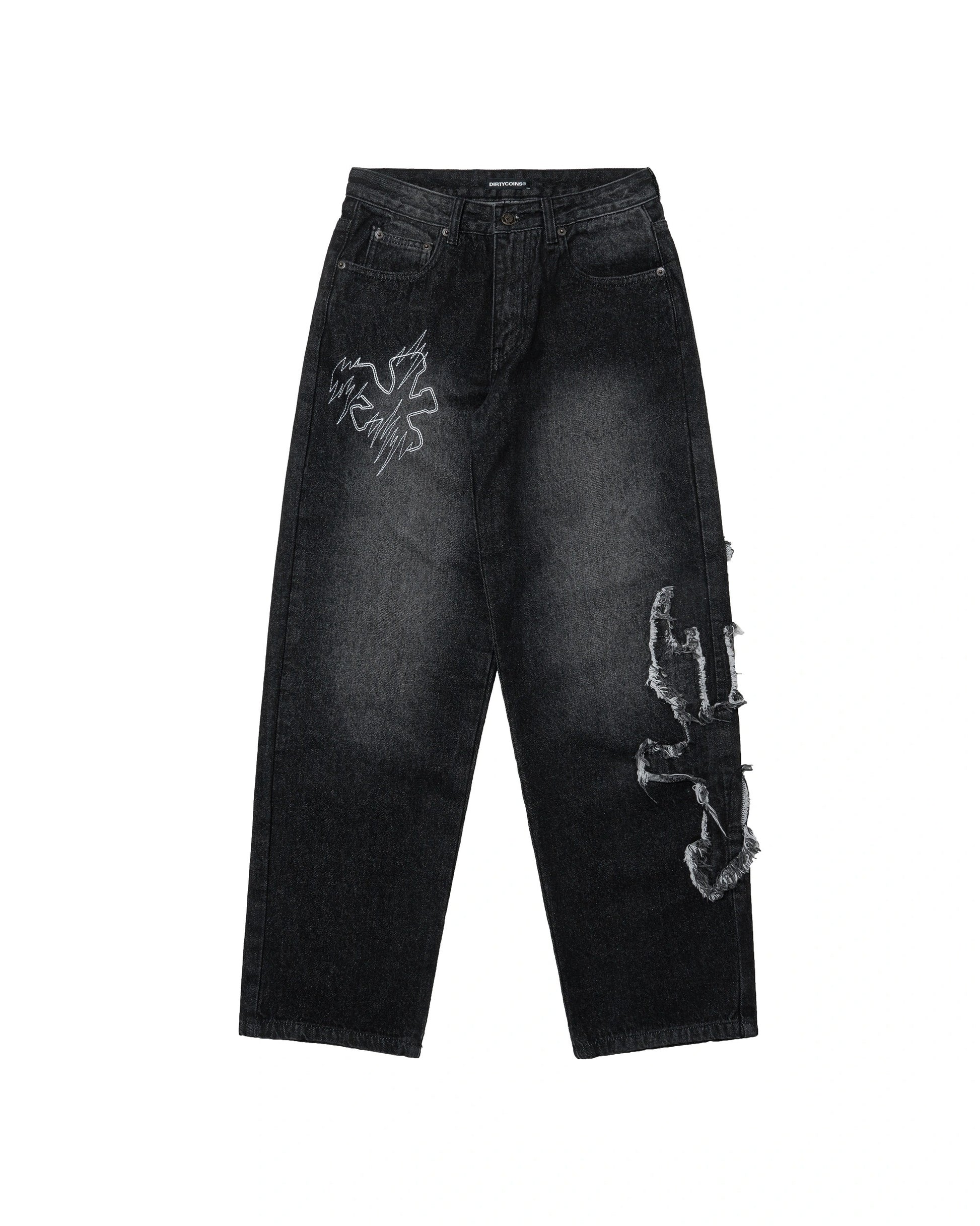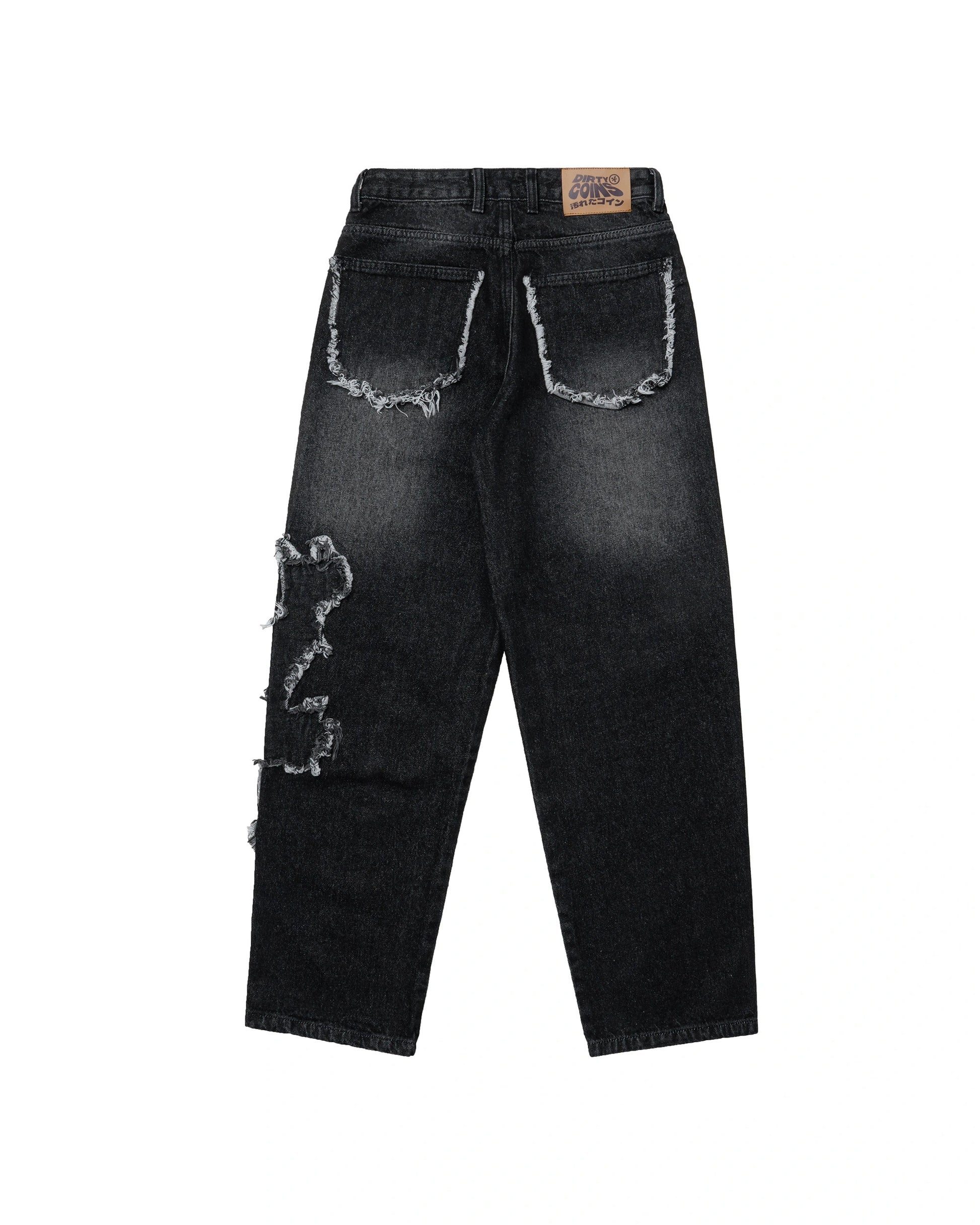 DirtyCoins Flame Wash Relaxed Denim Pants - Black