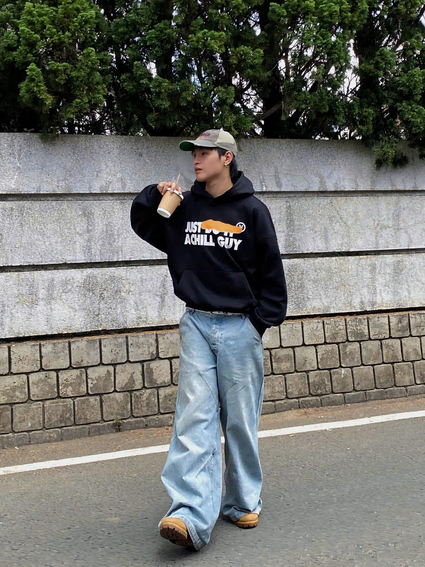 DirtyCoins Just A Chill Guy Oversized Hoodie Black