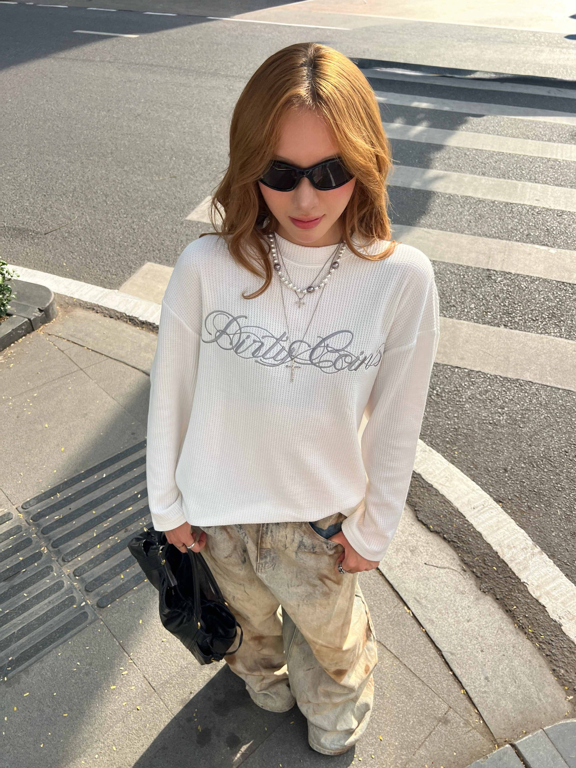 DirtyCoins Script Waffle Long Sleeve T-Shirt