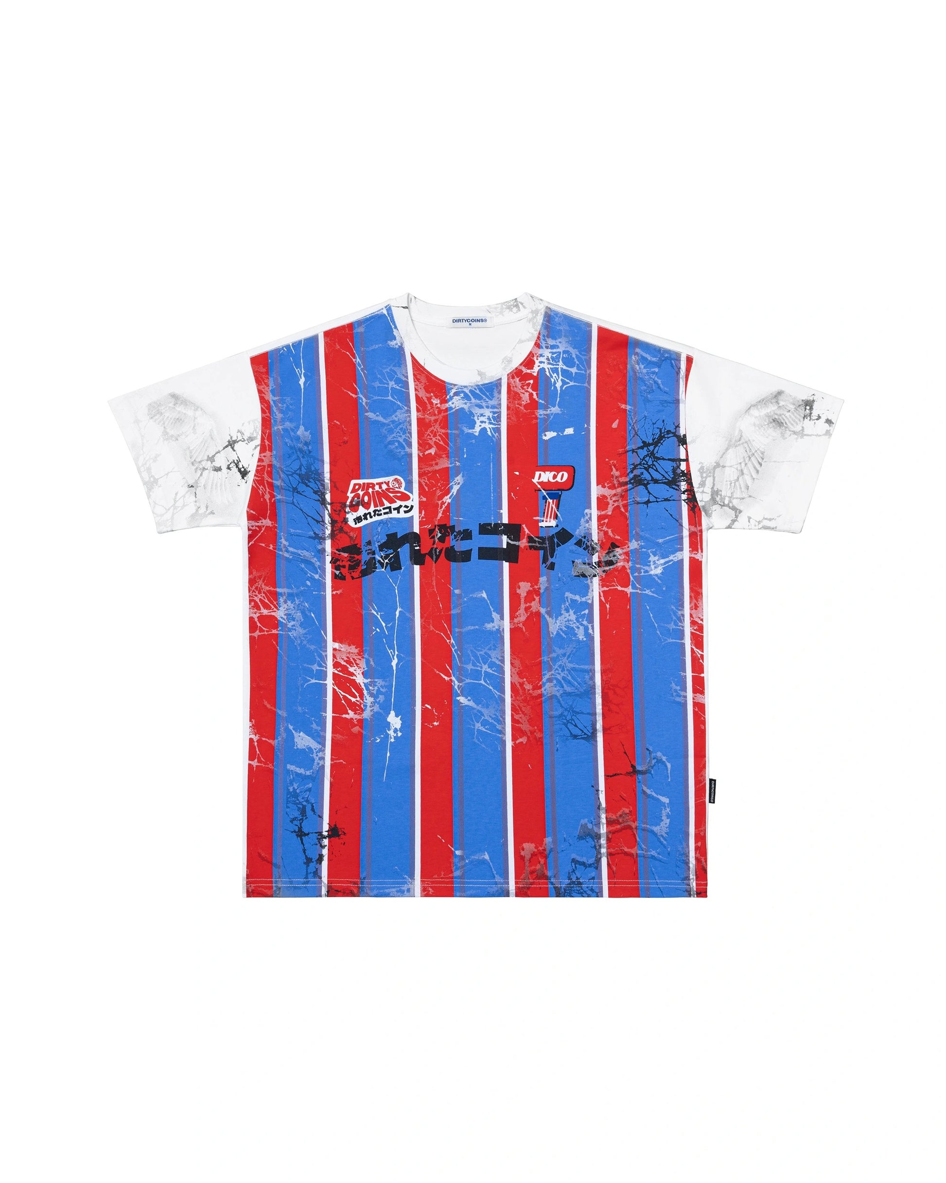 DirtyCoins Striped Destroy All Print T-Shirt Red Blue