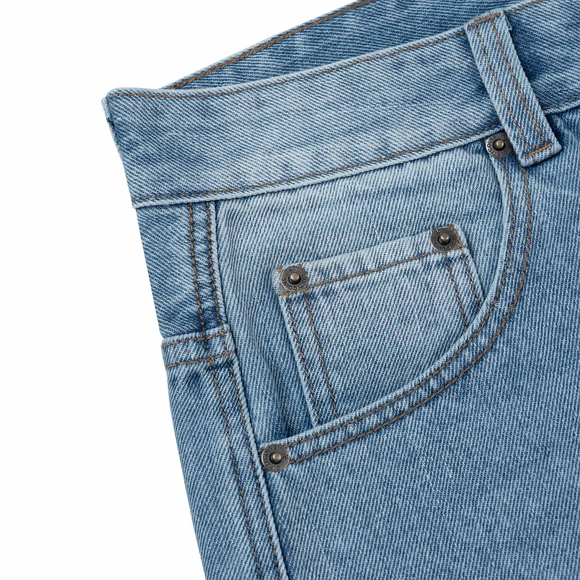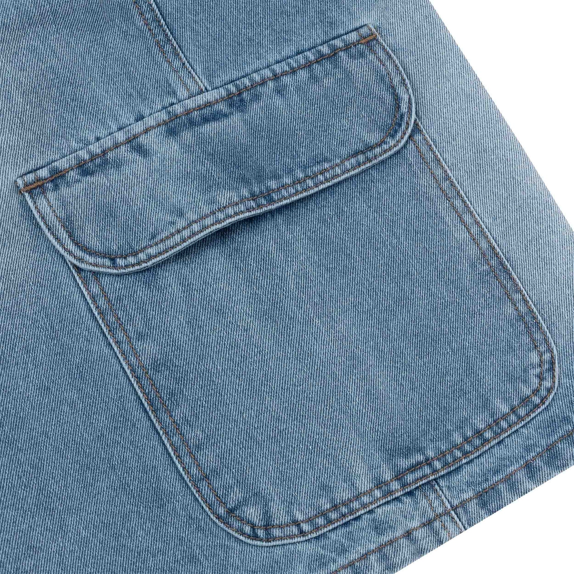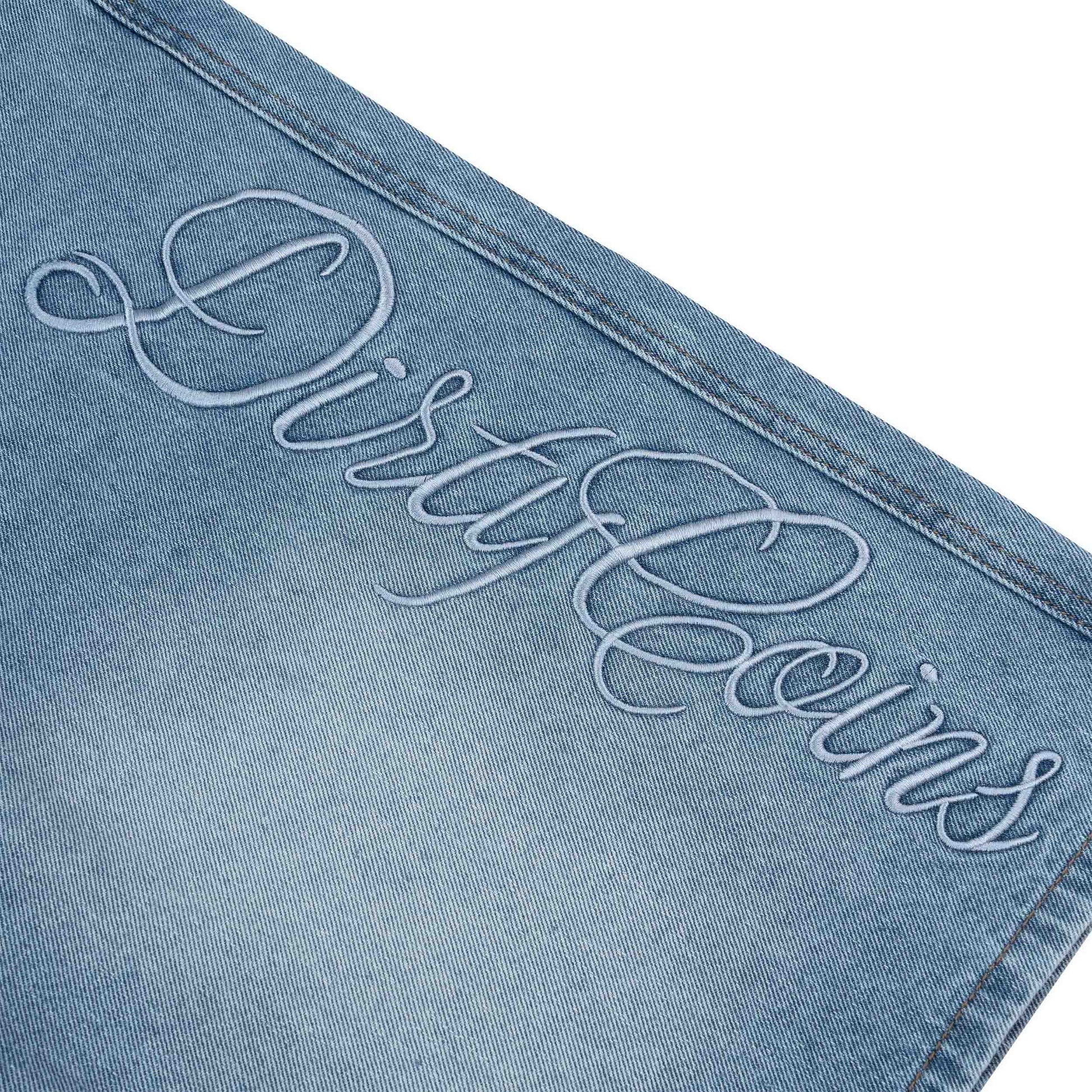 Embroidery Logo Baggy Denim Shorts - Light Blue