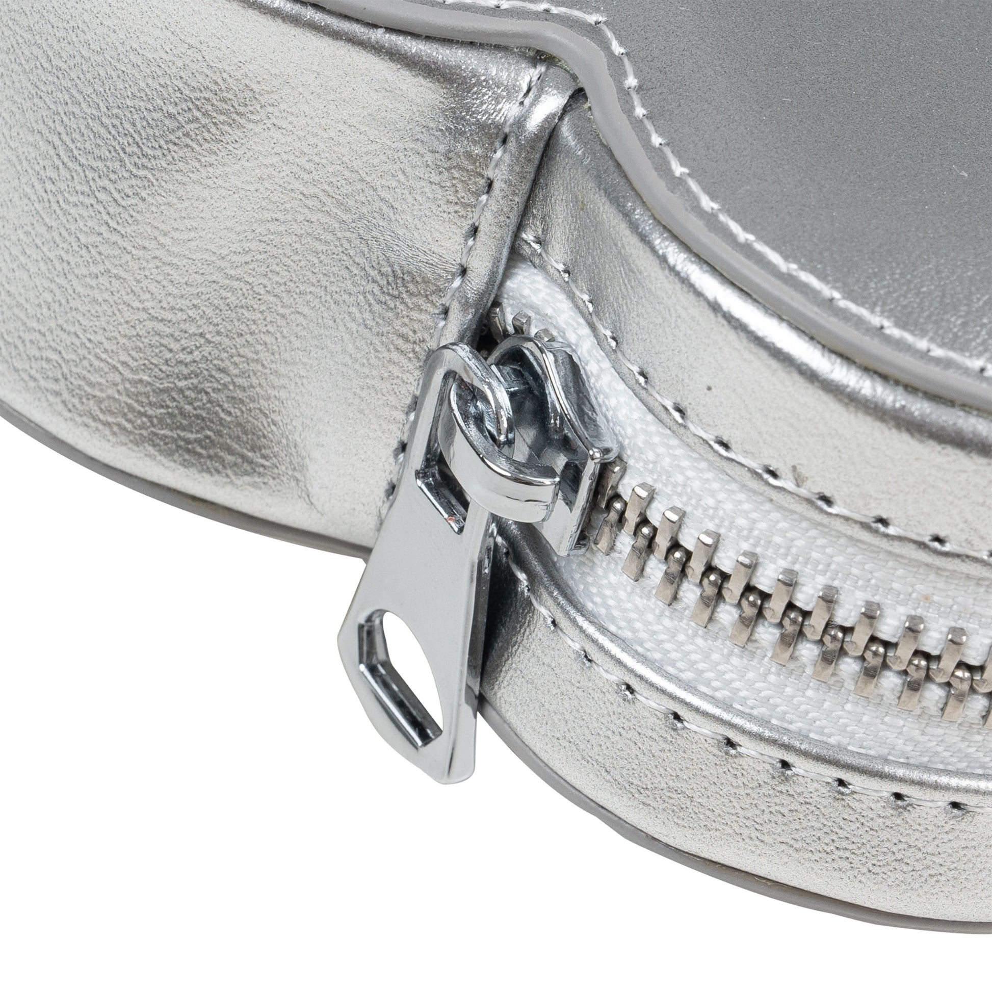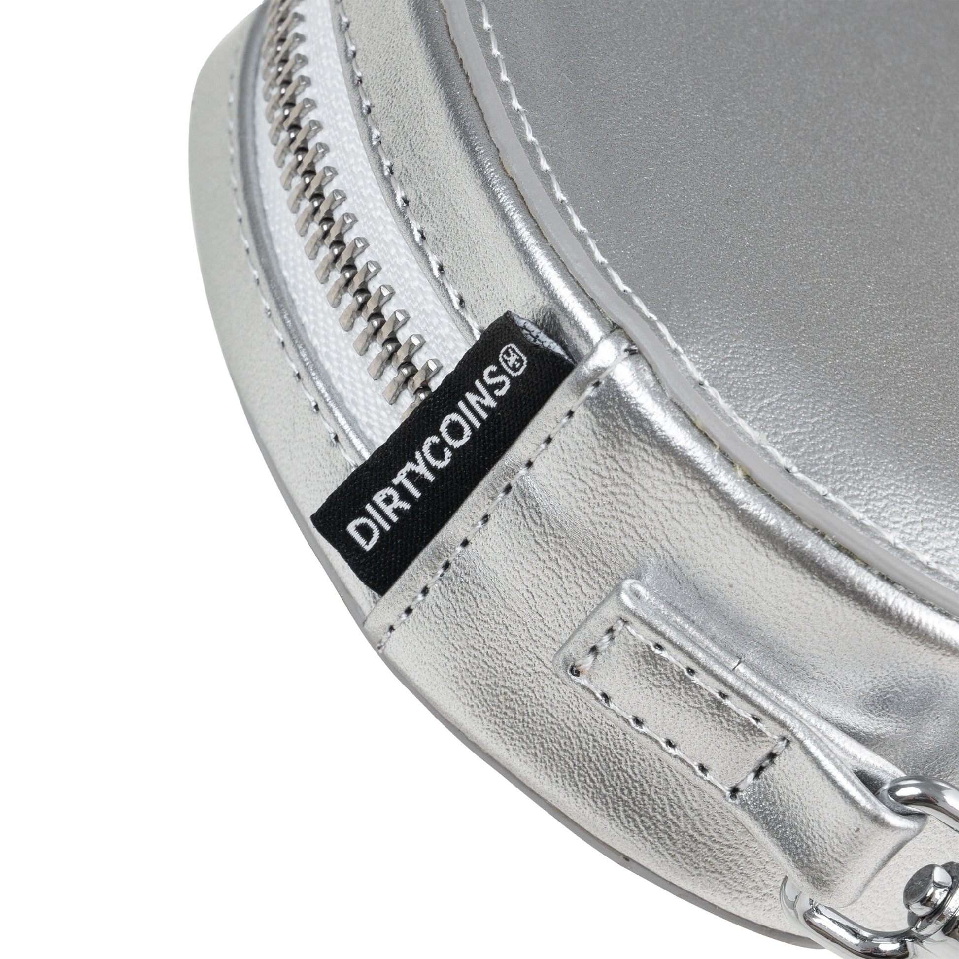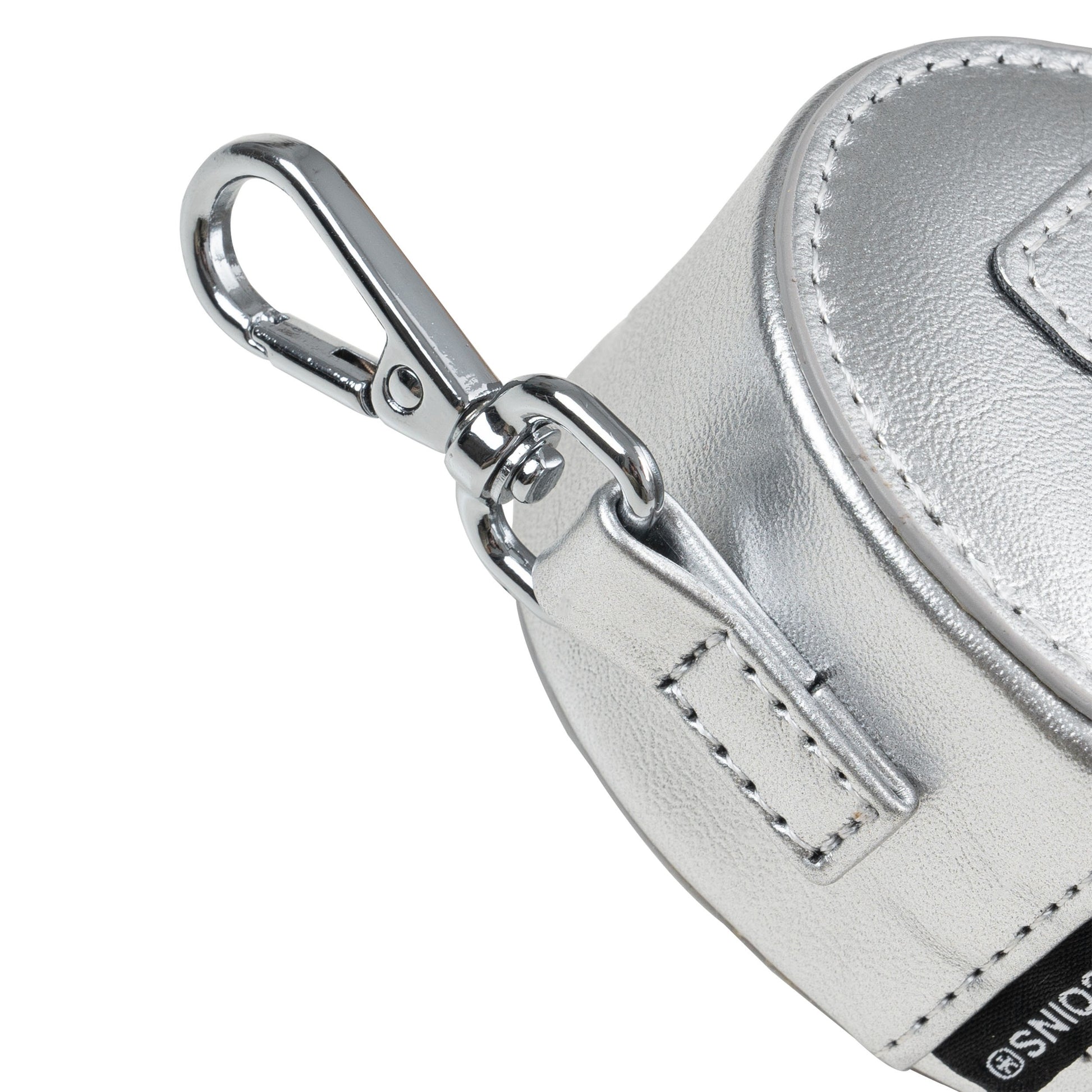 • Bag equipped with metal hook and zipper, comes with crossbody strap.