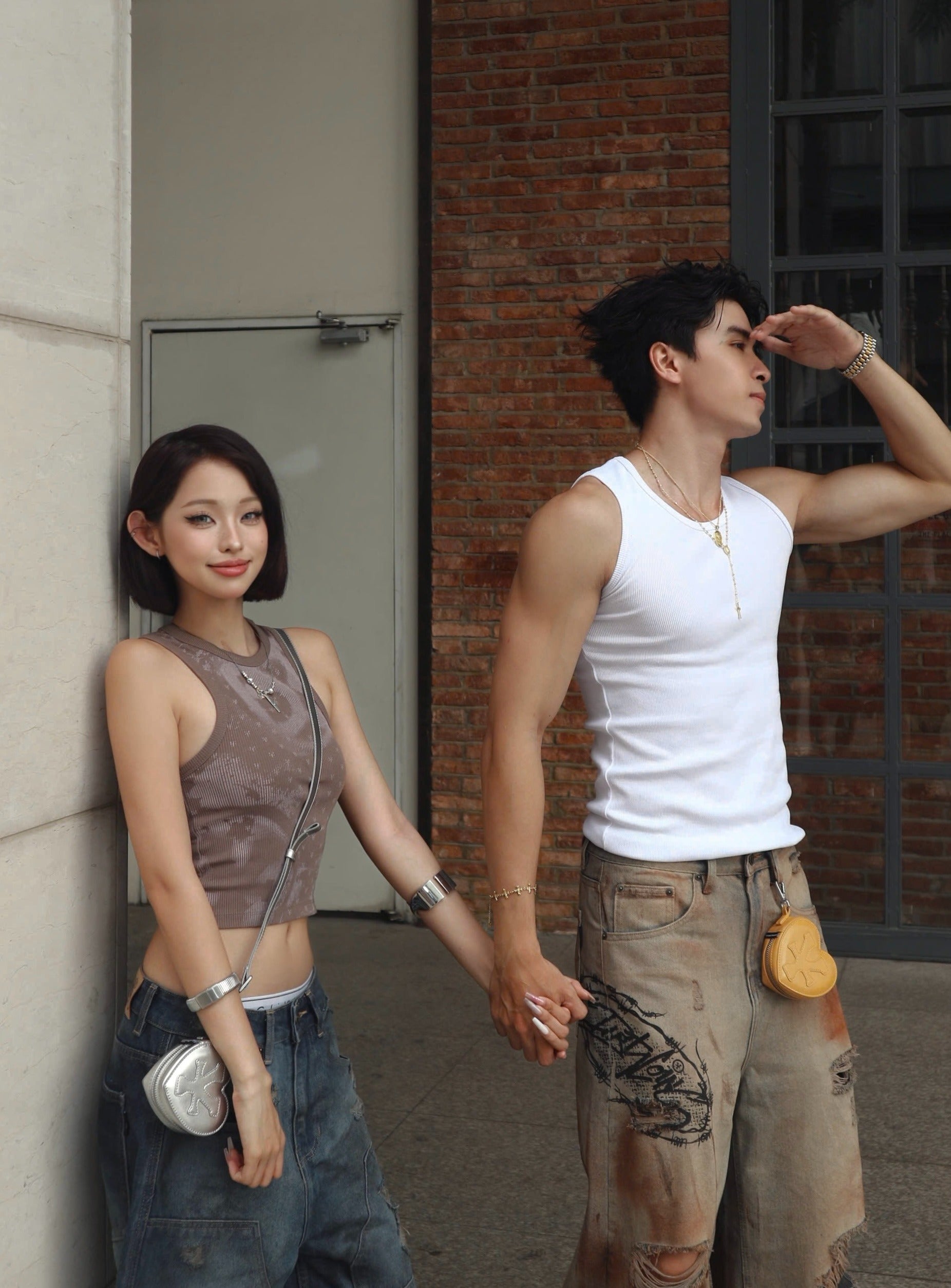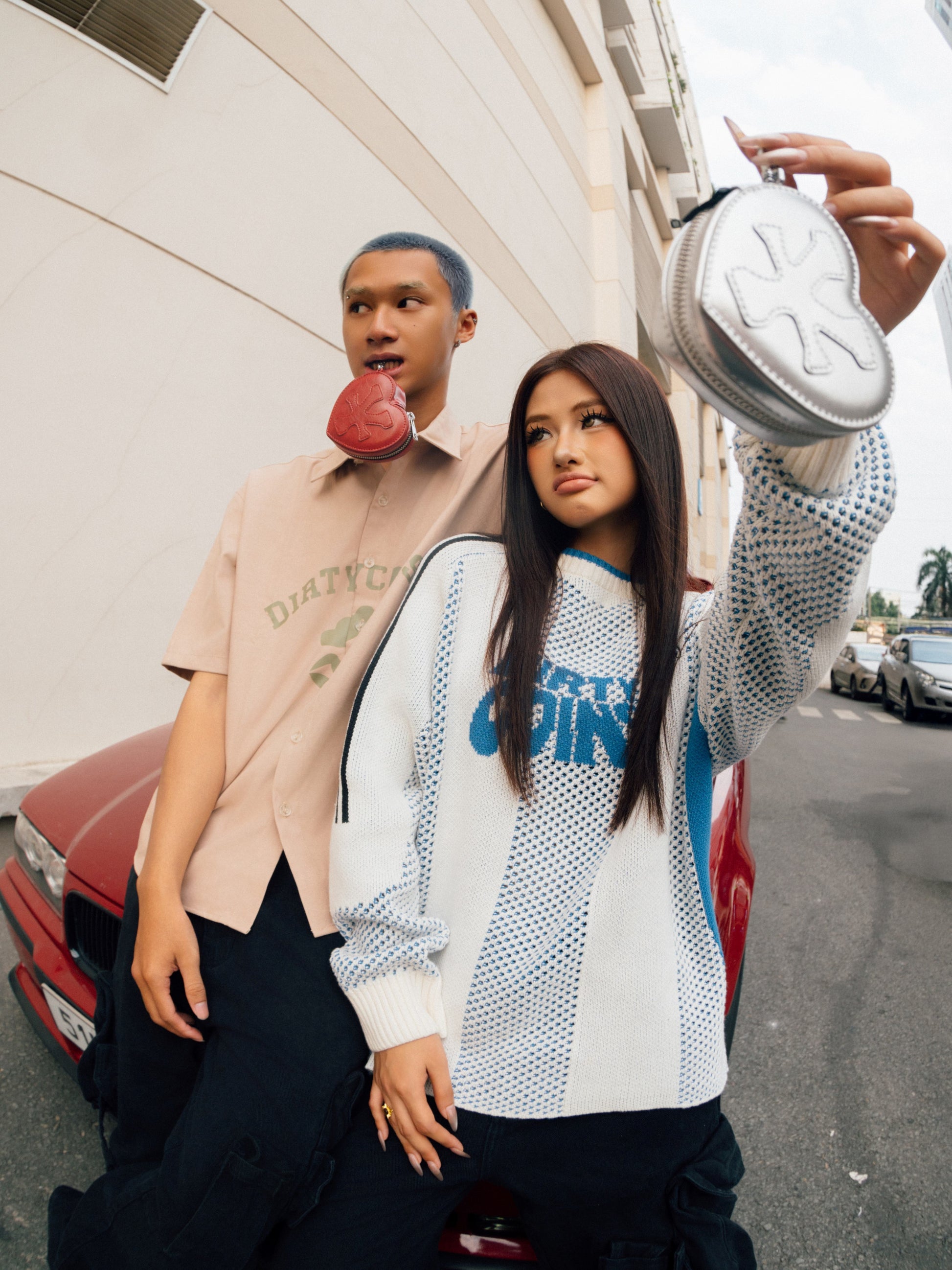 Logo Patched Heart Mini Pounch