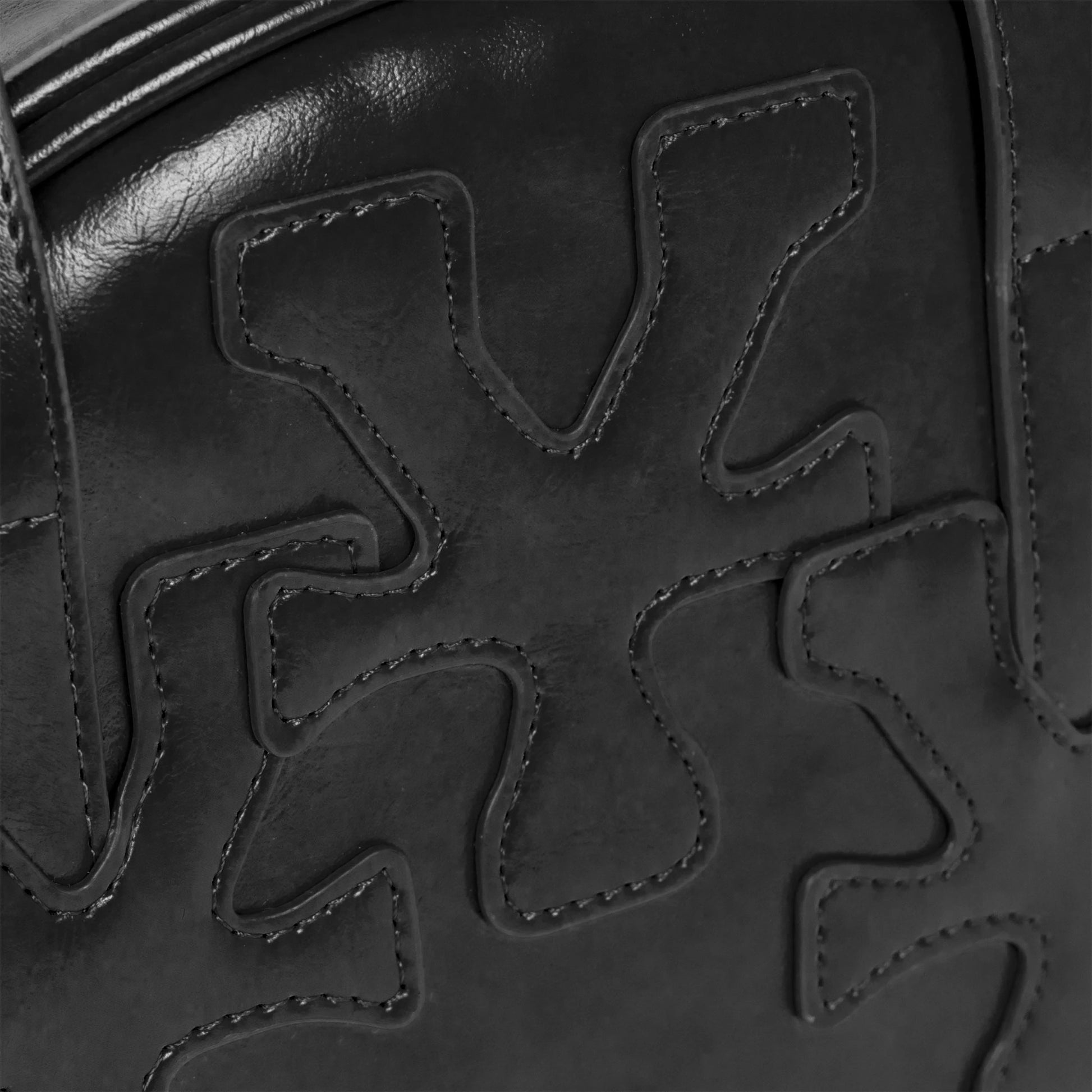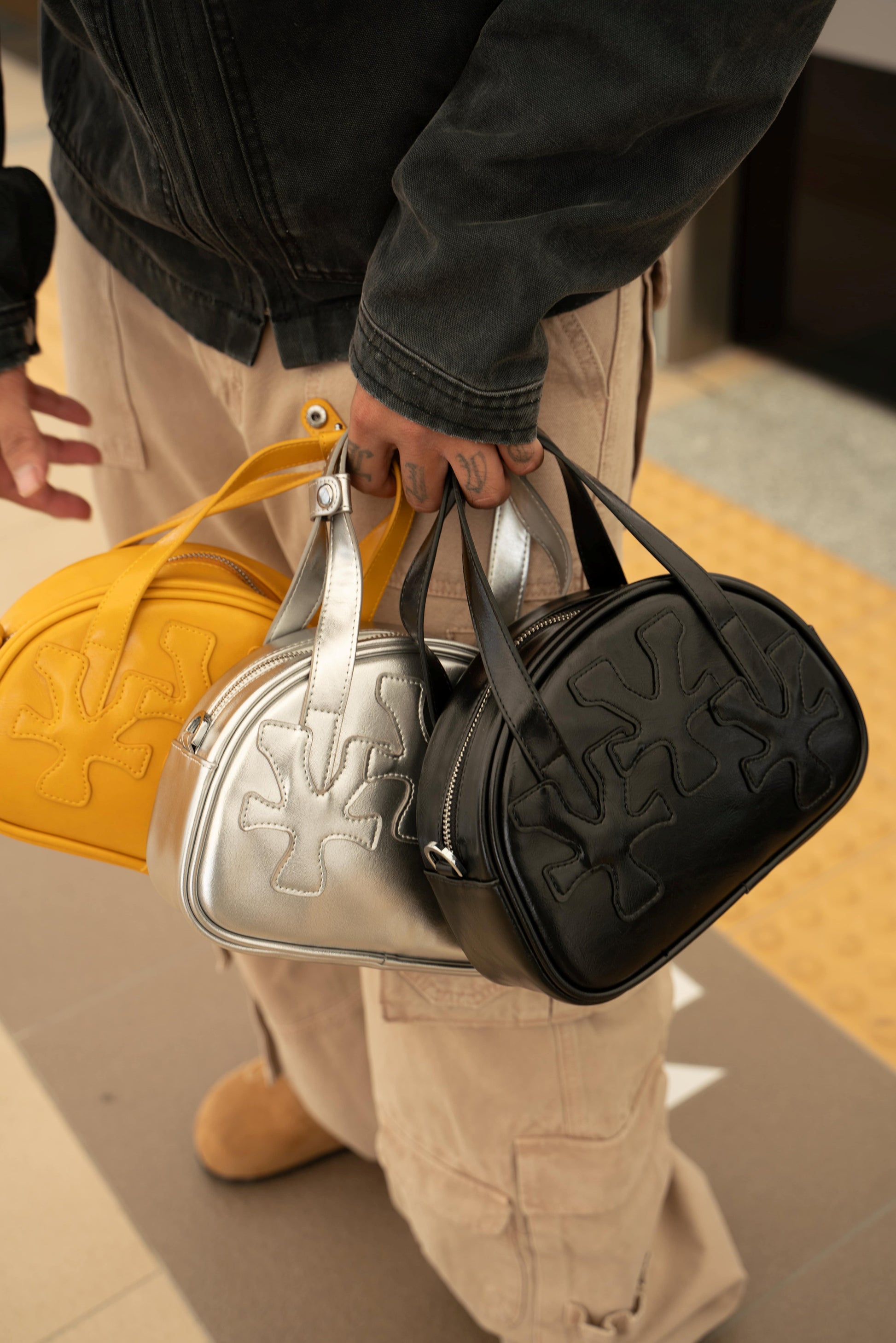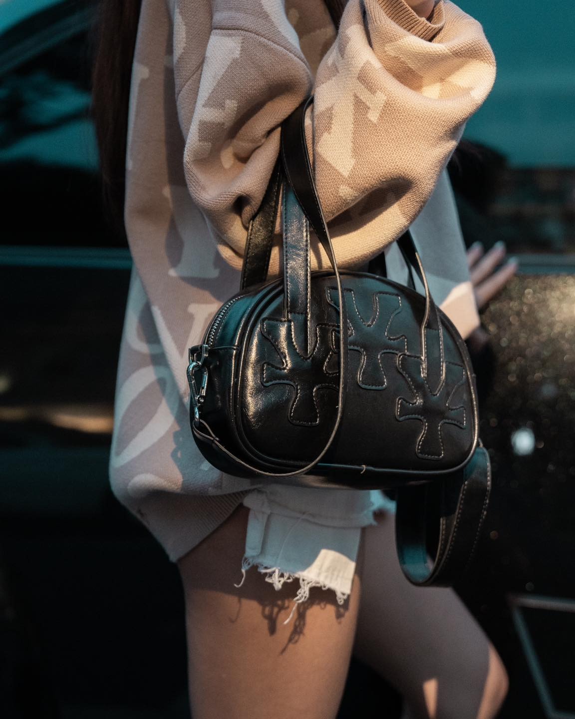 • Leather logo of the same material is cut and sewn on the front and back of the bag.